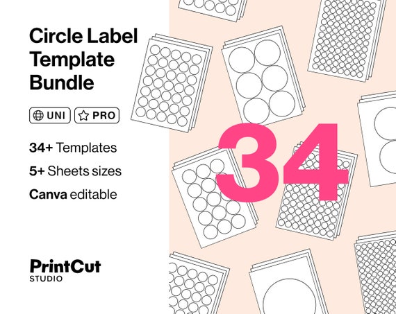 Circle Label Template Bundle 34 Blank Round Label Sheets Etsy